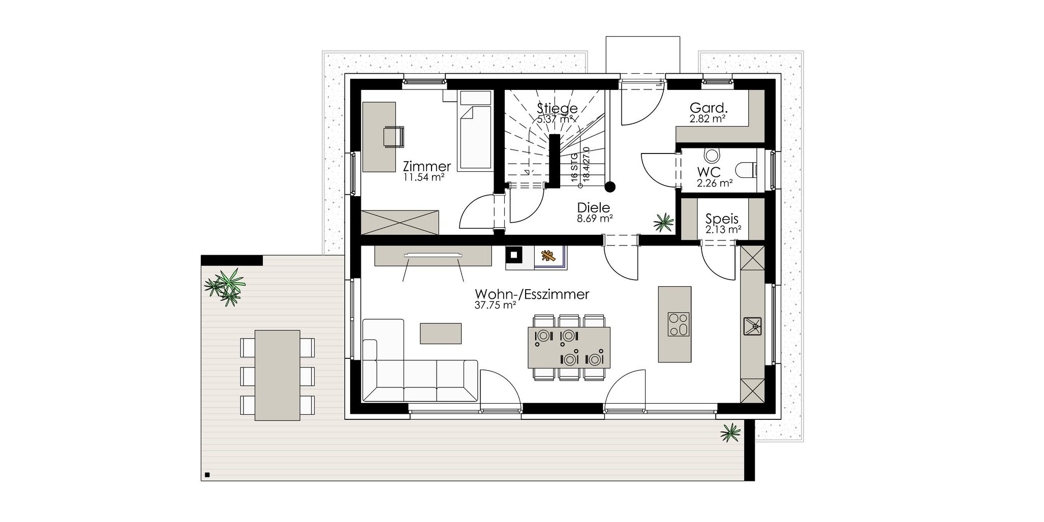 - Terrassenüberdachung und verputzte Dachuntersicht inkludiert
