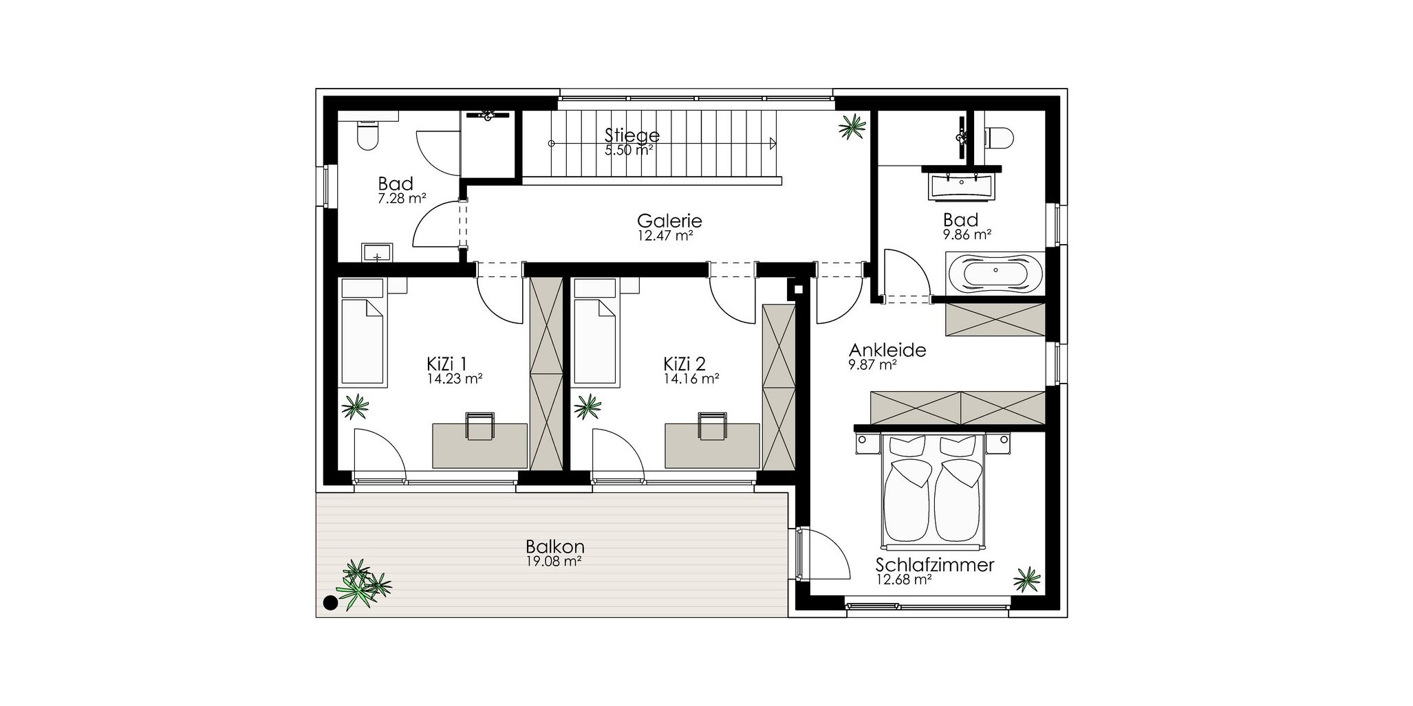 - Wohnnutzfläche OG inkl. Stiege: 86,05 m²