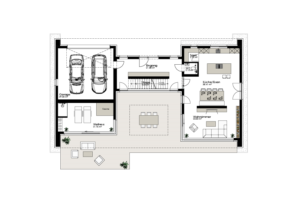 Inkl. Erdwärmeheizung, sanitärer Rohinstallation, Elektroinstallation, Beschattung und Rauchfang