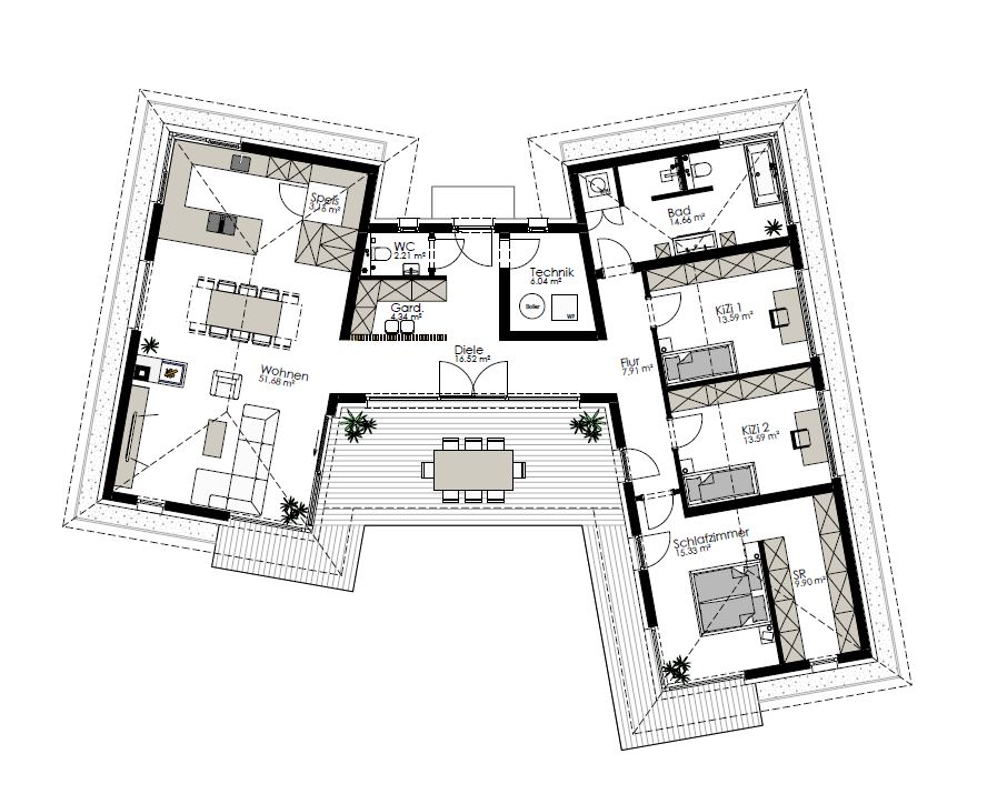 - Terrassenüberdachung und verputzte Dachuntersicht inkludiert