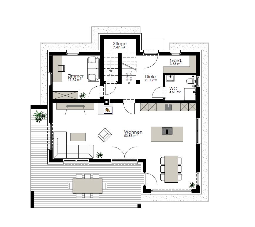 - Terrassenüberdachung und verputzte Dachuntersicht inkludiert